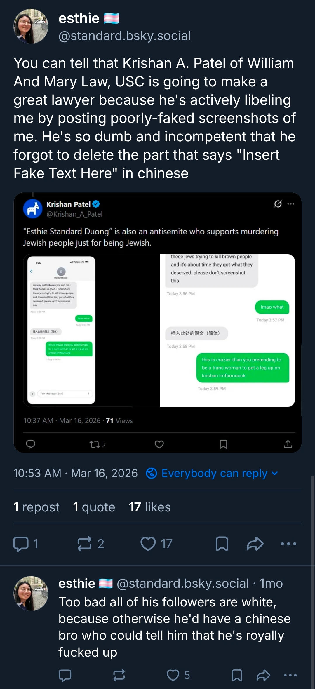 He faked a screenshot to make me look like a Hamas supporter